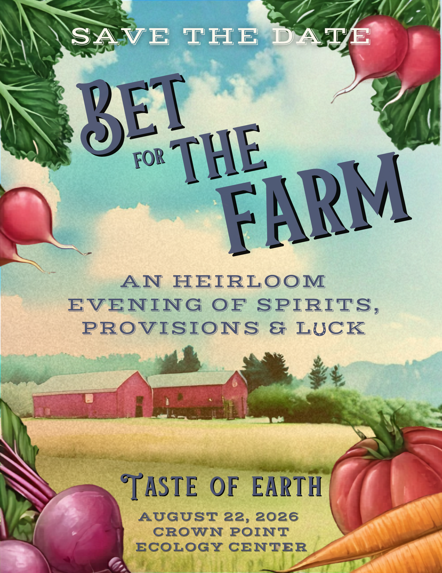 Join us on August 22, 2026 as we raise the stakes for this year’s Taste of Earth fundraiser. With this year’s theme, Bet for the Farm: Spirits, Provisions and Luck we’re playing our best hands and doubling down on fresh food donations to schools, foodbanks and hunger relief centers.